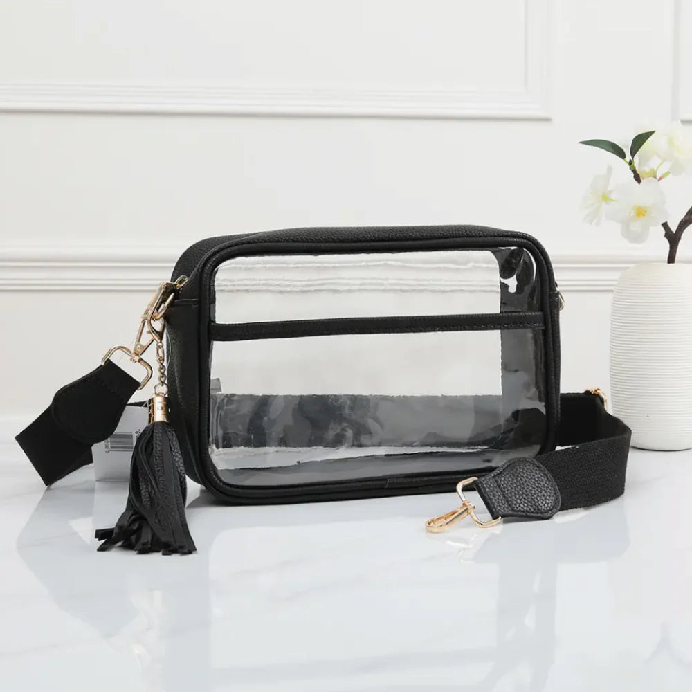 CLEAR STADIUM APPROVED MESSENGER BAG WITH FRONT POCKET & TASSEL