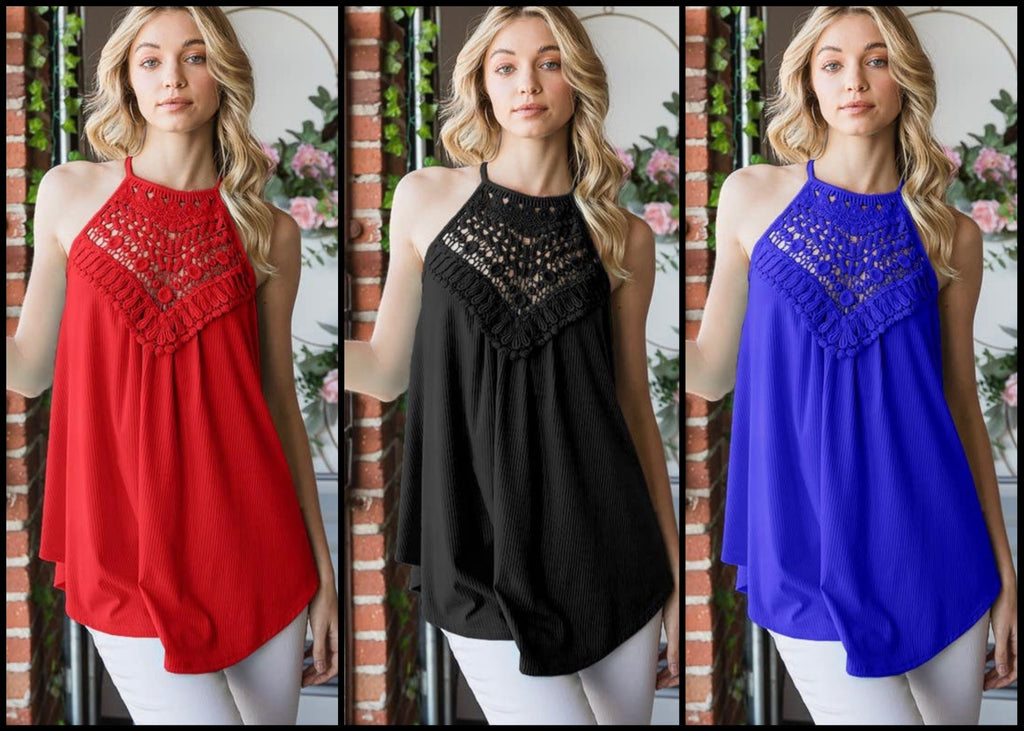 Halter Lace Embroidery Neck Trim Sleeveless Top