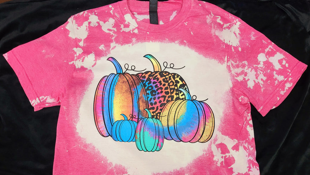 CUSTOM PUMPKIN AND SUNFLOWERS ON BLEACHED SHORT SLEEVE SHIRT