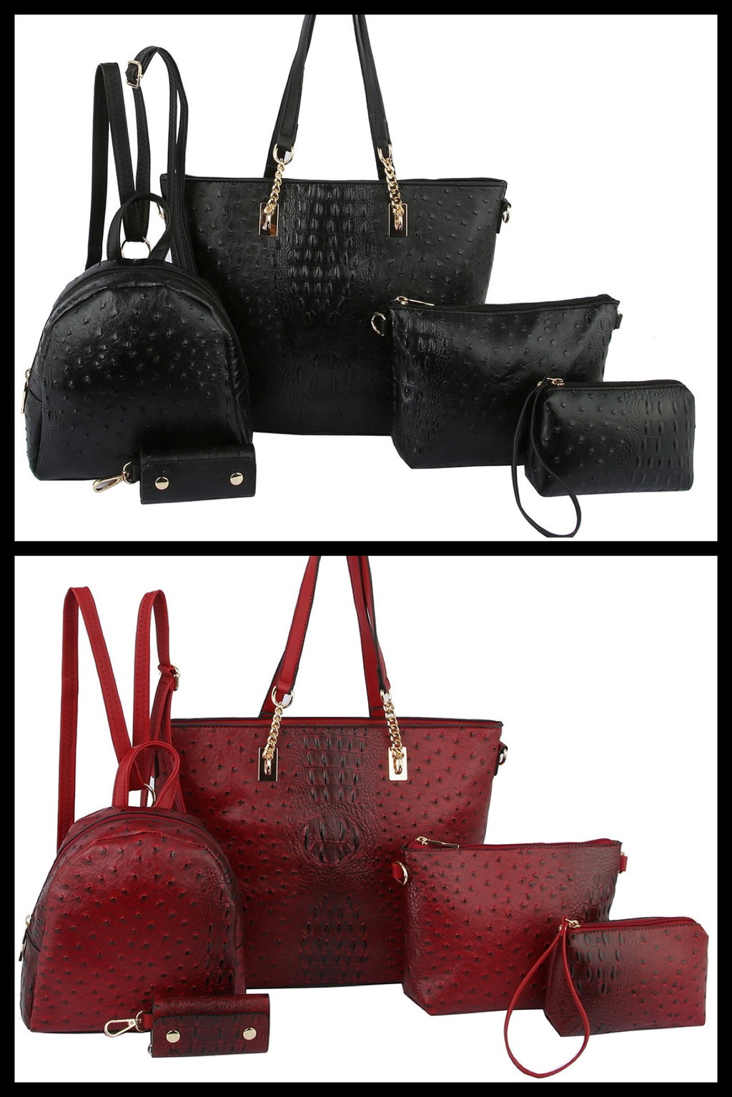 Whipstitch Accented Luxurious 3 in 1 Purse Set