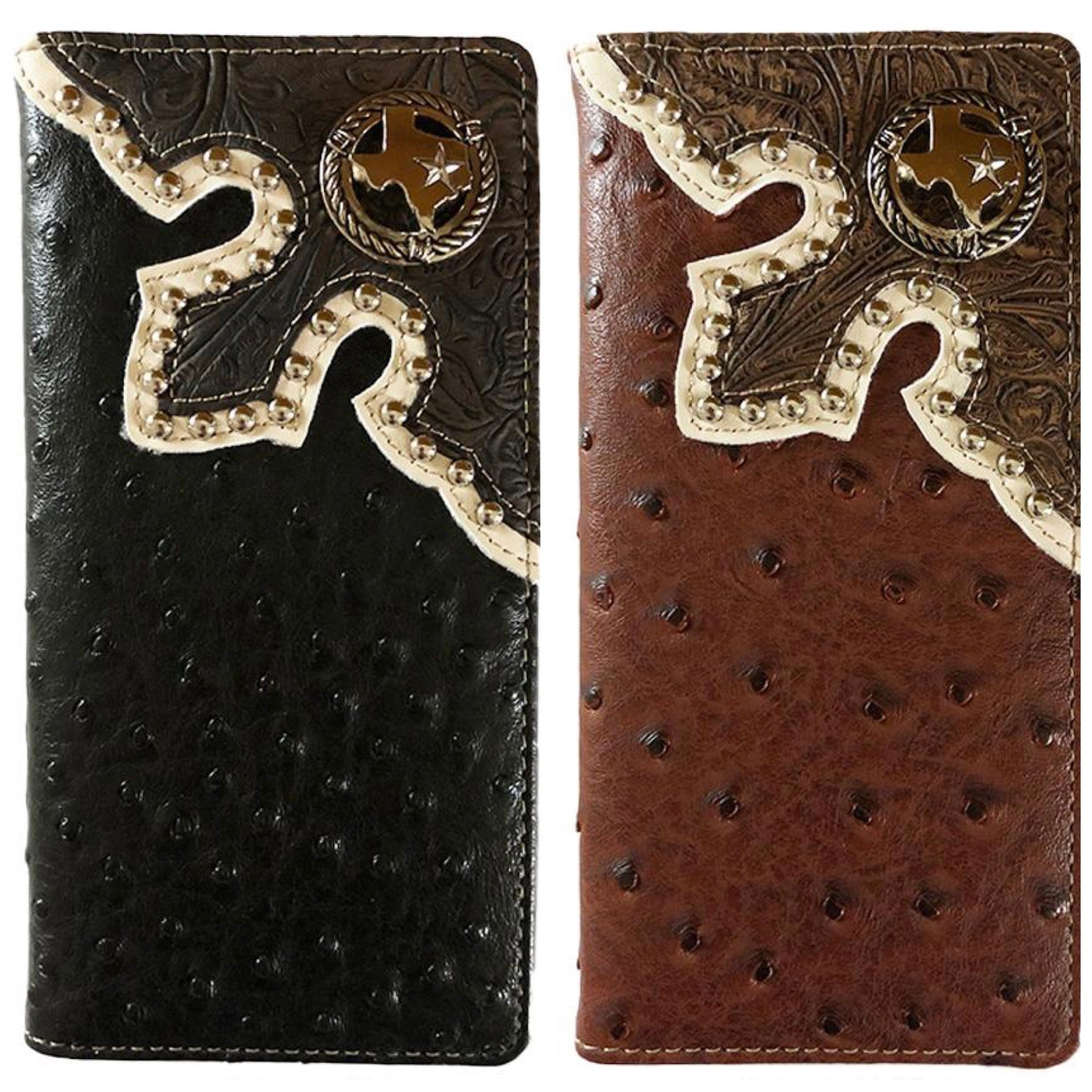 MENS WESTERN WALLET WITH TEXAS CONCHO OR UNISEX CHECK BOOK WALLET
