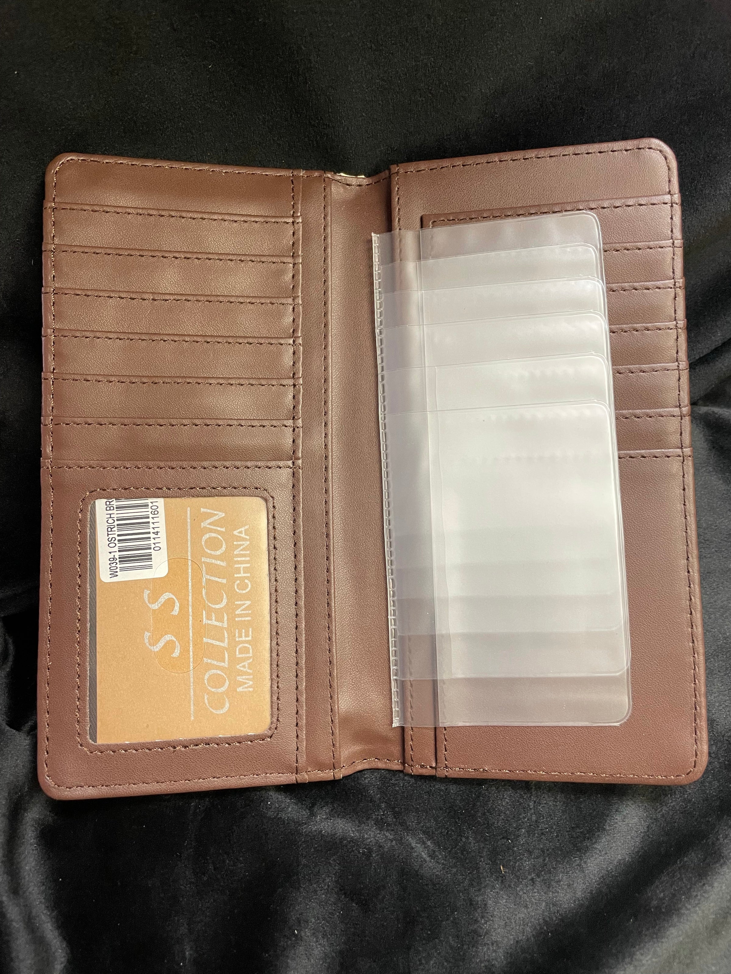 This wallet is available in brown or black.