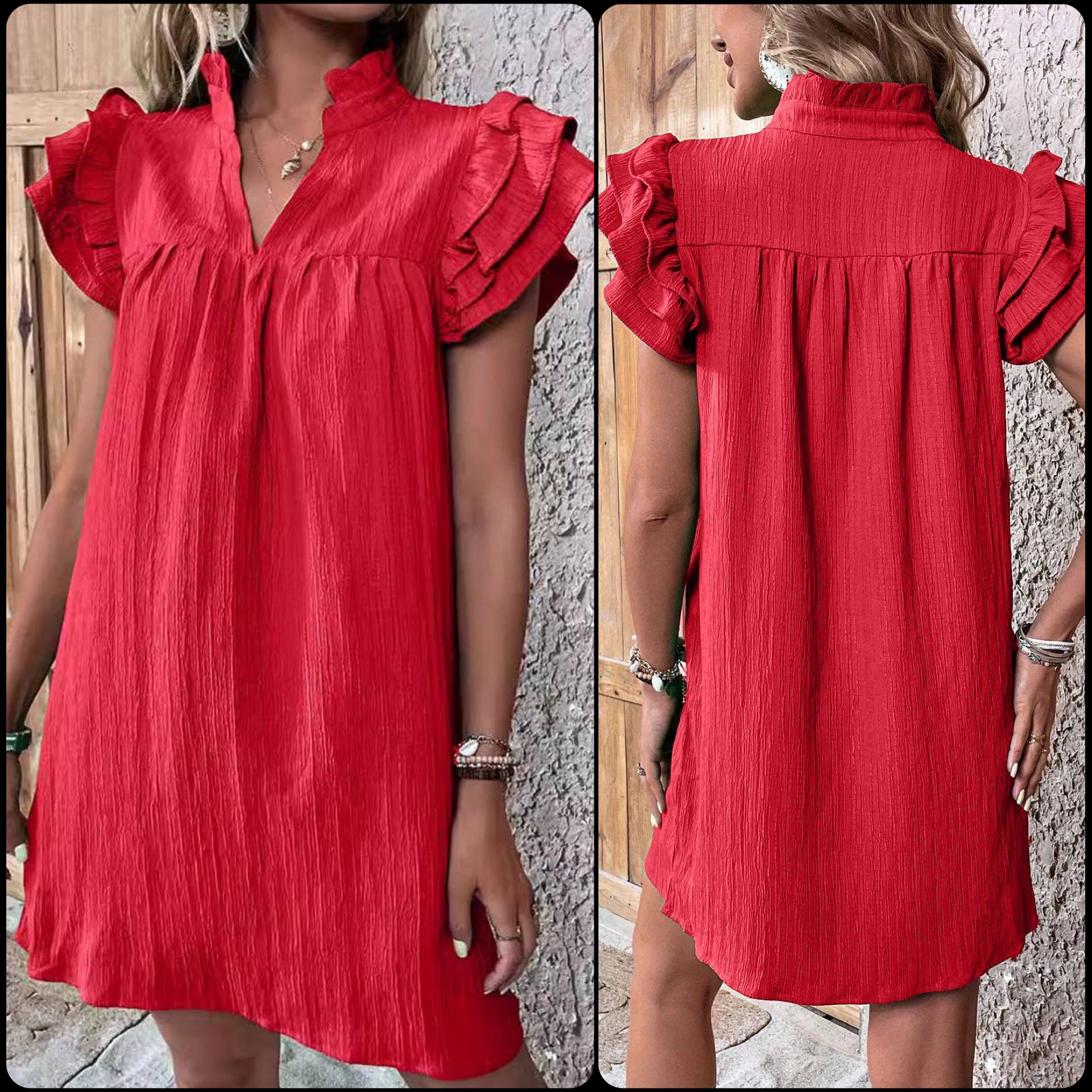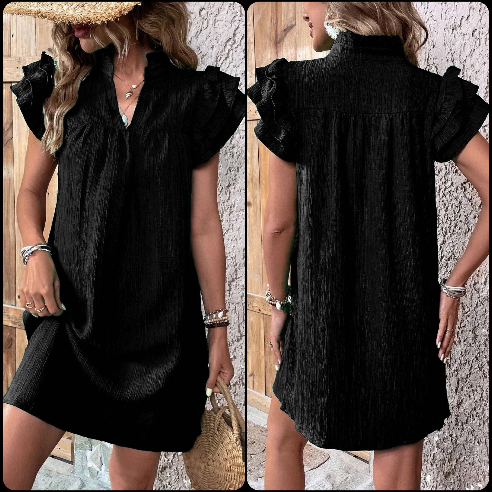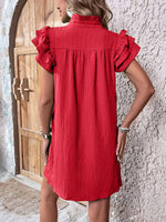Multi-Layer Lotus Sleeve V-Neck Long Pullover Dress